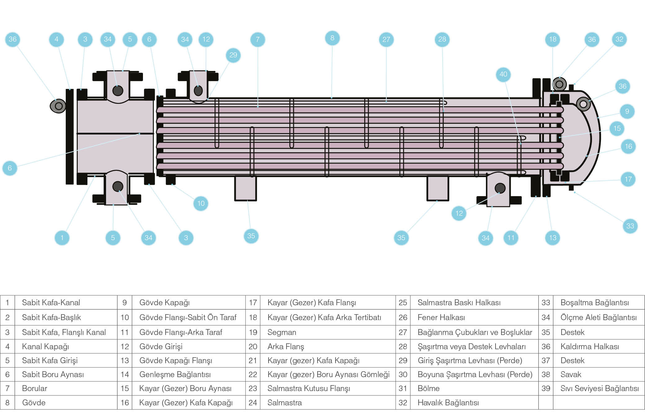 تتكون مبادلات الحرارة الأنابيبية من القطع التالية:
