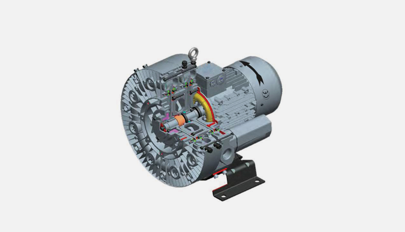 تعمل النافثات الهوائية على زيادة ضغط الغاز المستنفد من خلال سلسلة من الحركات الدوامية التي تحدث بفعل حركة الطرد المركزي للمروحة. عندما تدور المروحة، تحرك الفتحات الموجودة في المروحة الهواء إلى الأمام بحركة الطرد المركزي ويتكون حركة دائرية. خلال هذه الحركة، يتم ضغط الغاز بشكل مستمر على طول القناة ويزداد الضغط بشكل خطي. يتم نقل الهواء المضغوط عبر قناة الخروج من النافثة الهوائية إلى التجهيزات التي ستستخدمه.